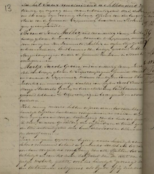 huwelijksakte, Sappemeer, aktedatum 27/5/1825, aktenr. 13